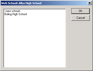 This dialog works similar to the previous dialog. Two lists are displayed. The list on the left is labeled School Mapping. The left column of this list is labeled 'School' and the right column is labeled 'Web School'.