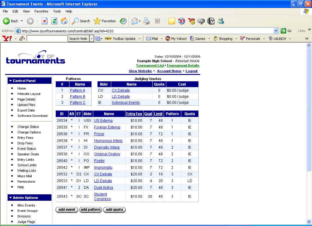 - This quota applies to US Extemp, Foreign Extemp, Prose, Humorous, Dramatic, Oratory, Poetry, Impromptu, Duet Acting, and Student Congress. A judge whose name is provided under this quota could cover any of these events.