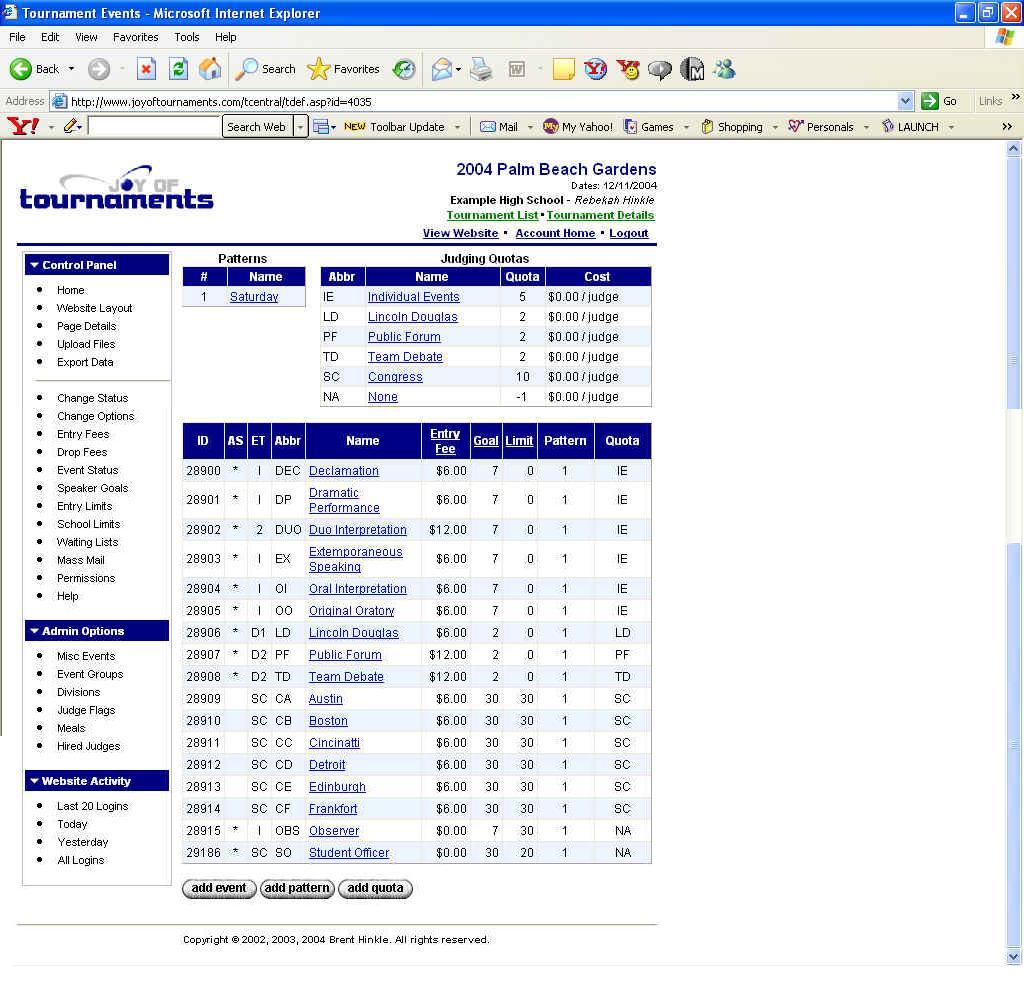 - This quota applies to Declamation, Dramatic Performance, Duo Interp, Extemp, Oral Interp, and Oratory. A judge whose name is provided under this quota could cover any of these events.