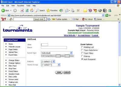 Would you like to see what some other coaches have done before you enter all your events? Please click on the following sample tournaments to see how other coaches set up the events on their websites.